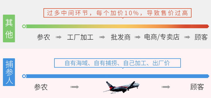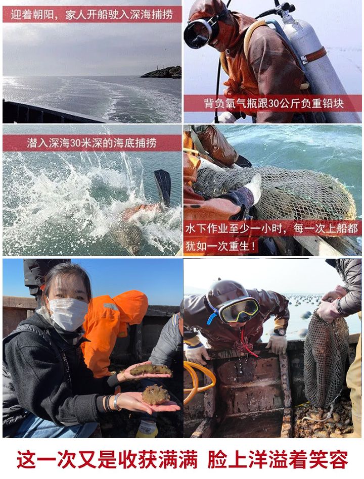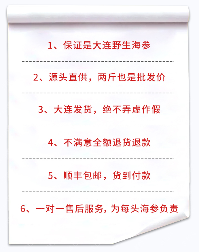 直接从捞参人手里买海参,没有了中间商的层层剥削,价格低,质量也有保证,海参品质看得到,摸得着,都是货到付款。
