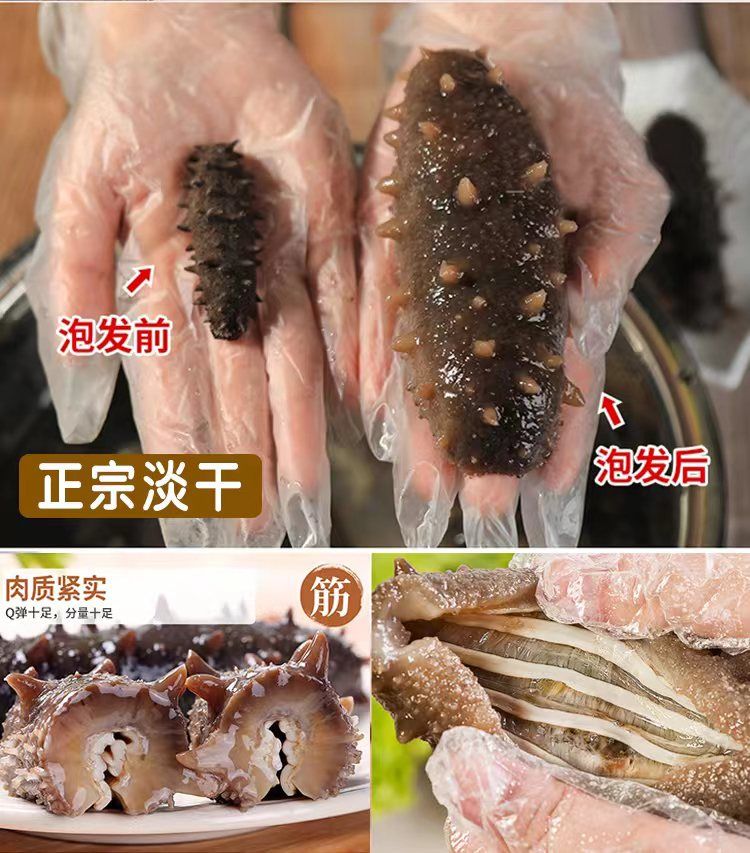 同样重量的淡干海参,泡发之后的重量要远远高于糖干和盐干海参。